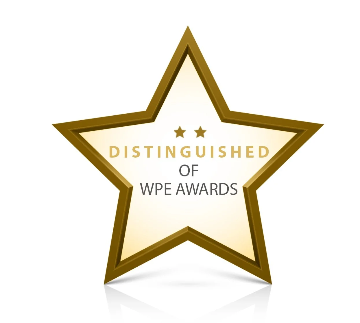 Distinguished Award van WPE Awards behaald door Hondenfotograaf Friesland of Annemarie Visser vanwege de hoge kwaliteit foto's en meerdere behaalde awards.